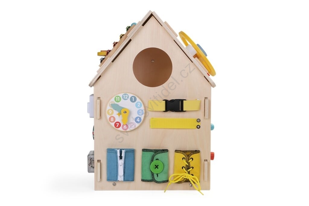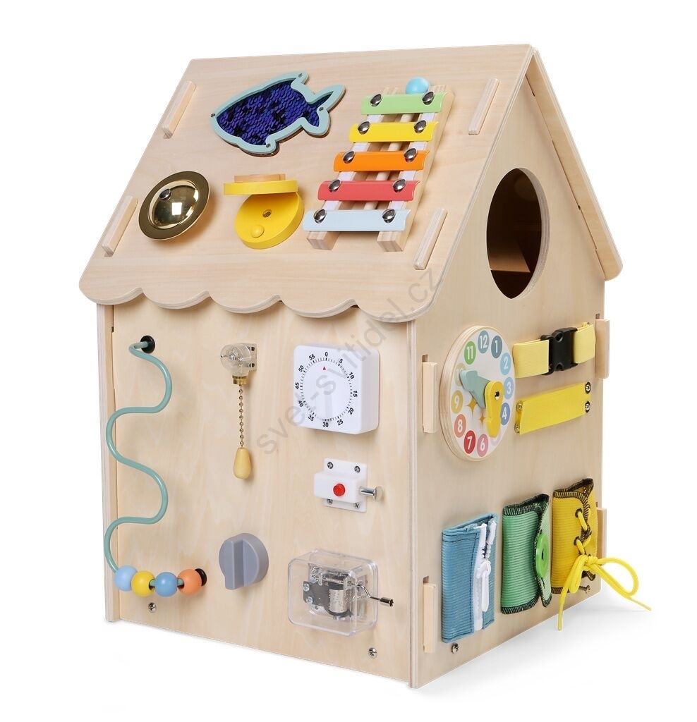 • Tento domeček přináší spoustu zábavy, díky které bude moci vaše dítě rozvíjet svou zručnost, zvídavost a zejména jemnou motoriku.