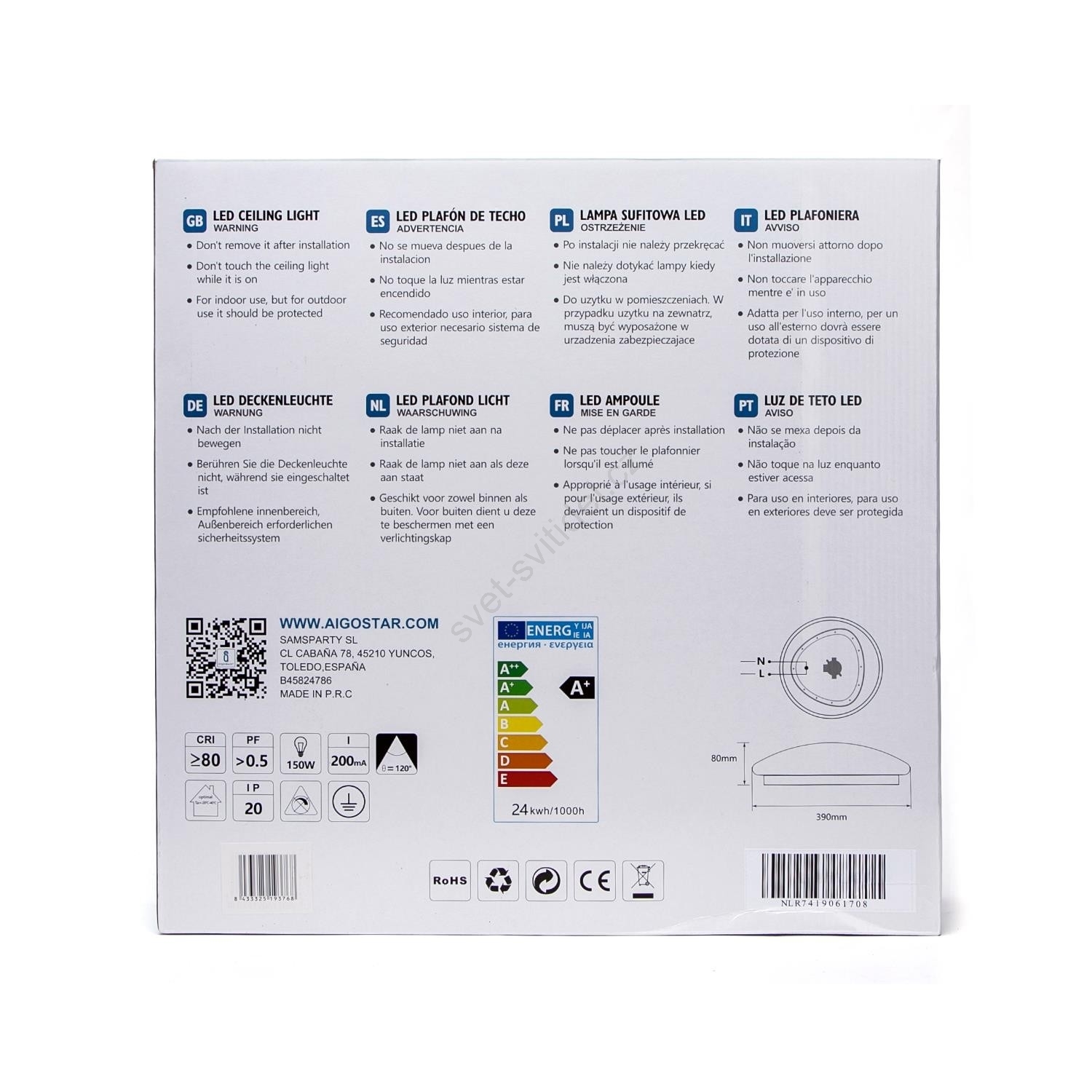 Aigostar - LED Stropní svítidlo se senzorem LED/24W/230V 6500K