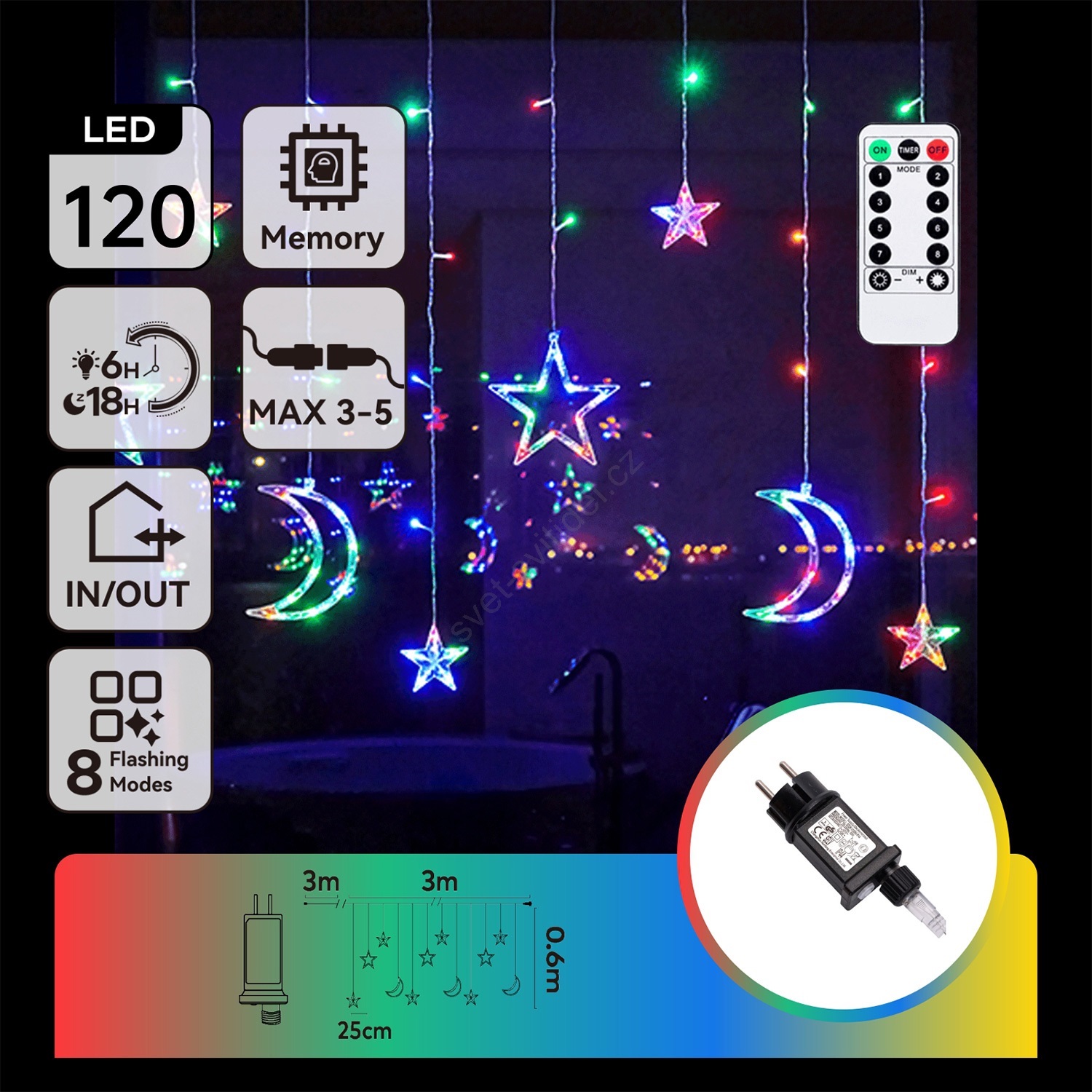 Aigostar - LED RGBY Venkovní  řetěz 120xLED/8 funkcí 3x0,6m IP44 multicolor + dálkové ovládání