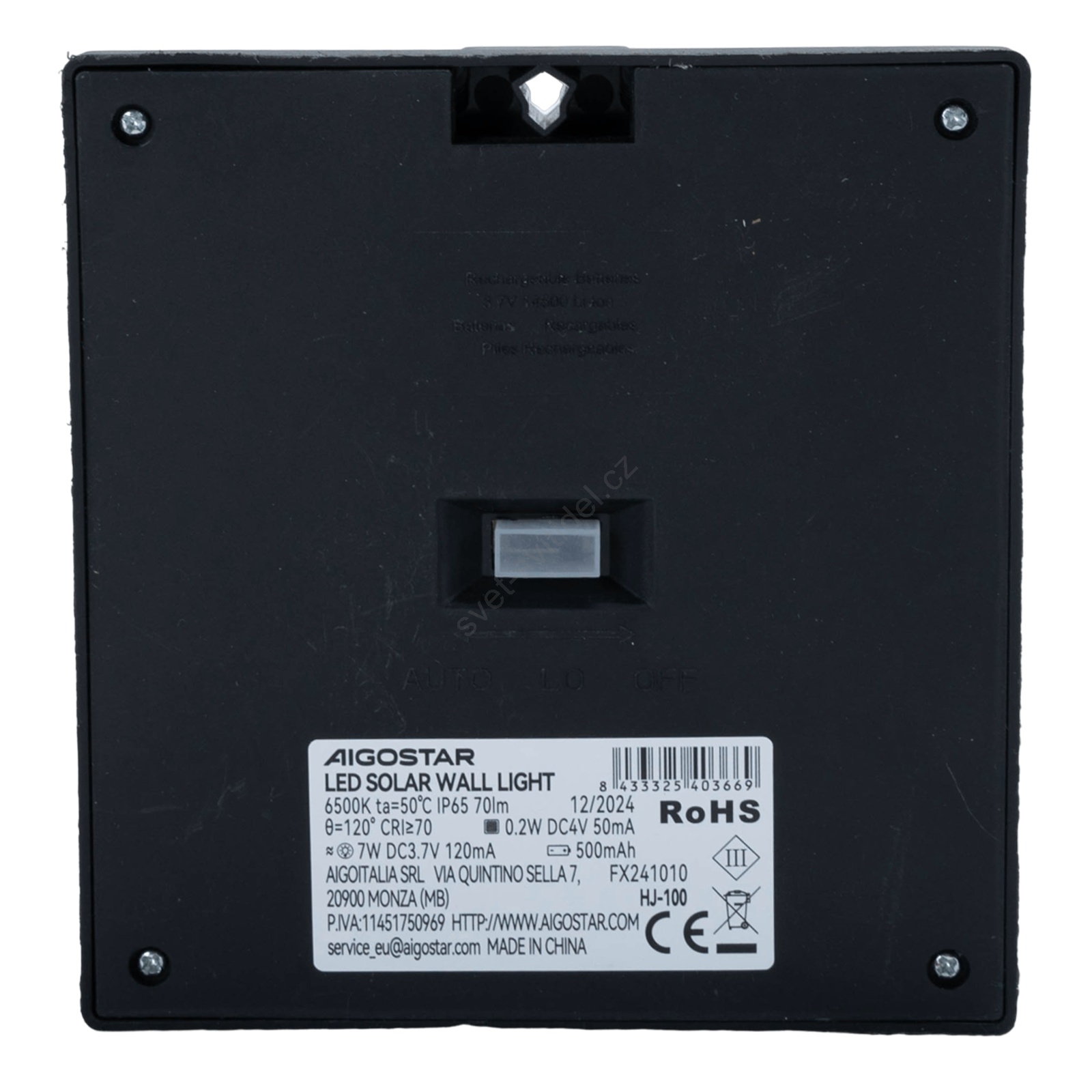 Aigostar - LED Solární svítidlo se senzorem LED/3,7V 6500K 500 mAh IP65 černá
