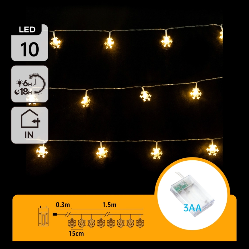 Aigostar - LED Vánoční řetěz 10xLED/3xAA 1,5m teplá bílá vločky