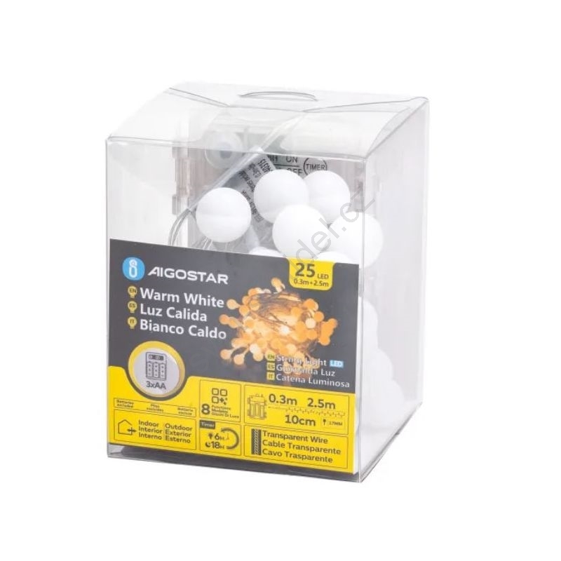 Aigostar-LED Venkovní vánoční řetěz 25xLED/3xAA/8 funkcí 2,8 m IP44 teplá bílá