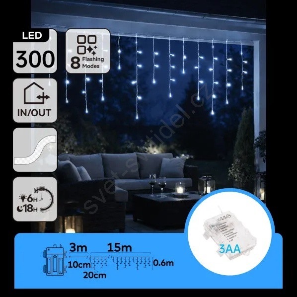 Aigostar - LED Venkovní vánoční řetěz 300xLED/8 funkcí 3xAA 18x0,6 m IP44 studená bílá