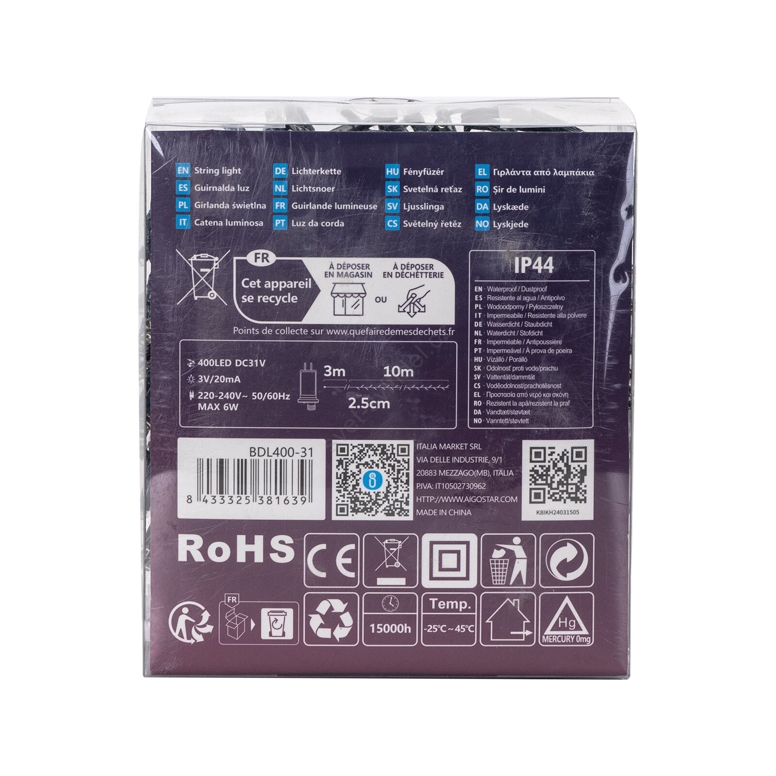 Aigostar - LED Venkovní řetěz 400xLED/8 funkcí 13m IP44 studená bílá