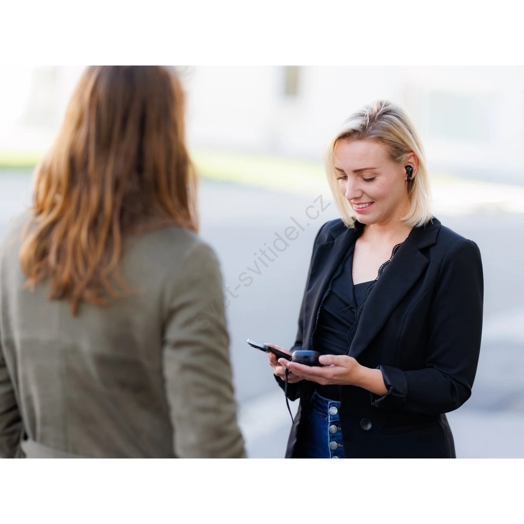 • Obsah balení: překladač se sluchátky, nabíjecí pouzdro s LCD displejem, licenční karta pro aktivaci překladače, 3 velikosti náušníků, nabíjecí USB-C kabel.
