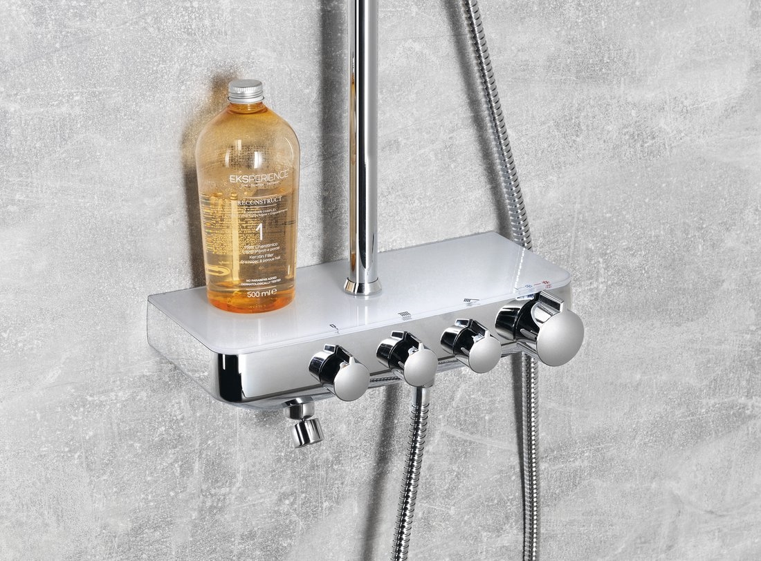 • Sprchový sloup je vyroben z mosazi a má chromovou povrchovou úpravu.