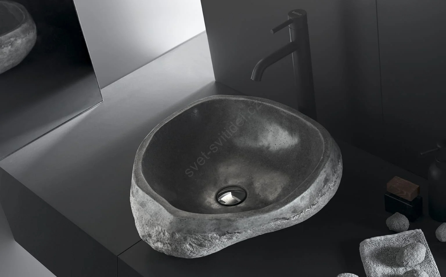 • Umyvadlo je vyřezané z přírodního říčního kamene.