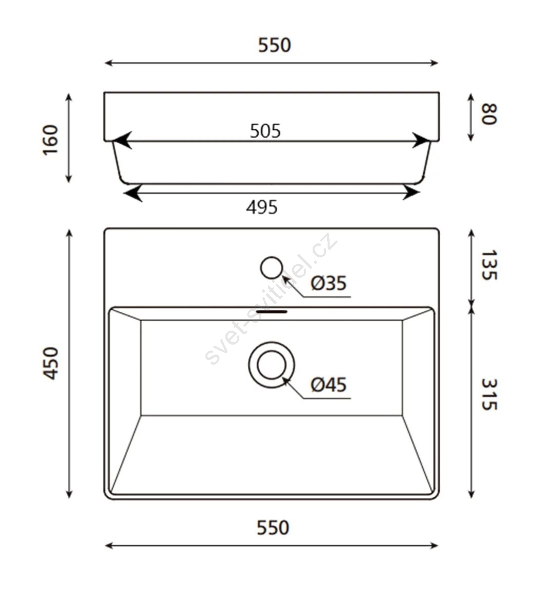 • Moderní a elegantní umyvadlo s přepadem.