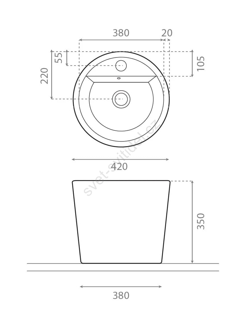 • Balení obsahuje umyvadlo bez sifonu a baterie.