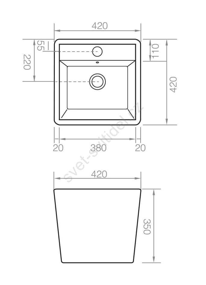 • Balení obsahuje umyvadlo bez sifonu a baterie.