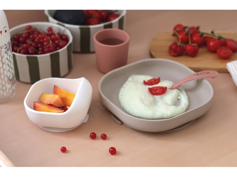 • Sada talíře, misky, hrnku na pití a lžičky z vysoce kvalitního silikonu je ideální pro první samostatné krmení.