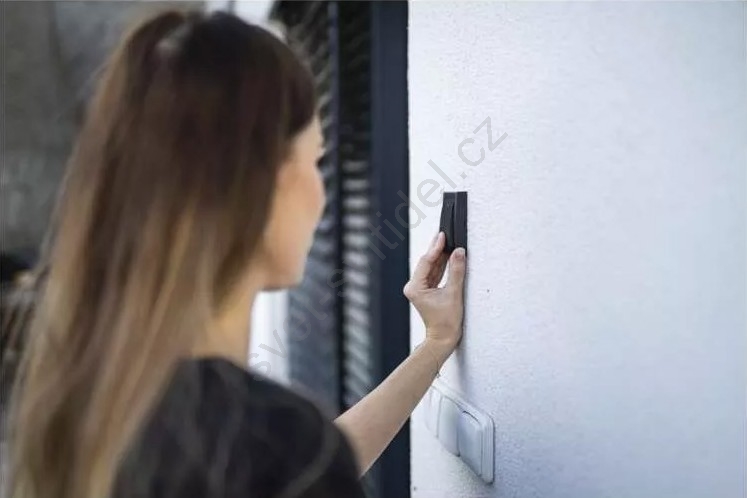 • Nepotřebujete žádné baterie, protože tlačítko se zvonkem komunikuje pomocí rádiových vln.