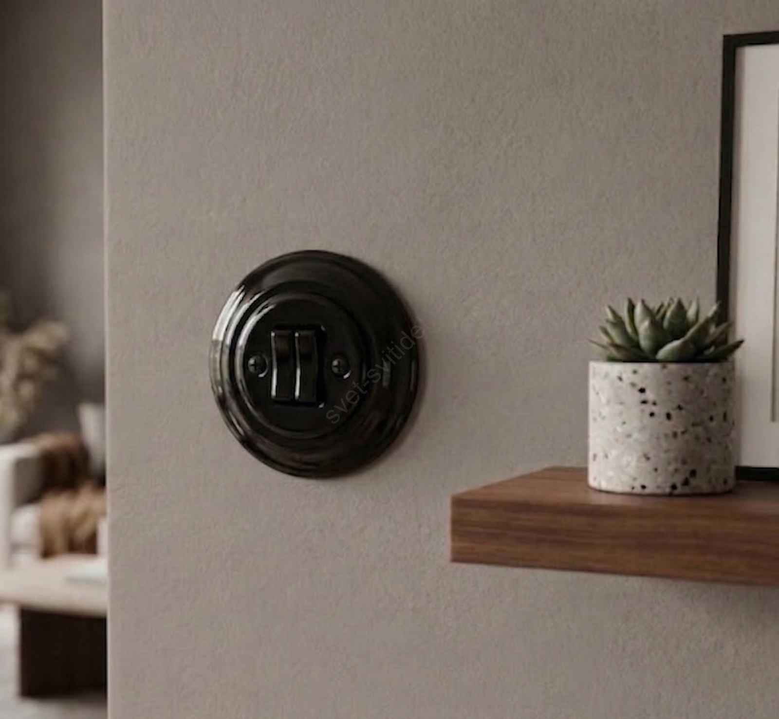 • Bohemia-Design - Porcelánový retro dvojitý vypínač s rámečkem č. 6+6 černá