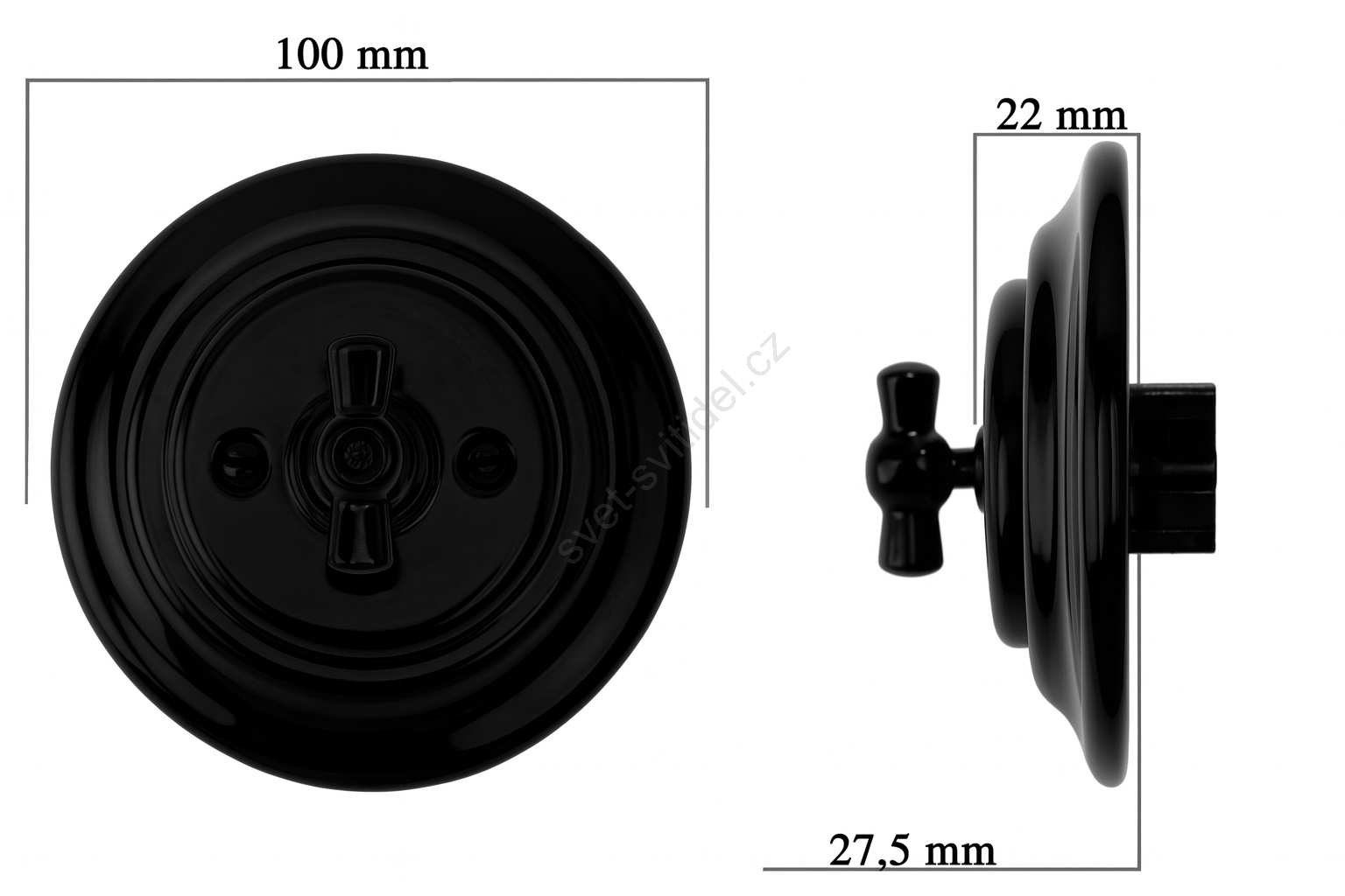 Bohemia-Design - Porcelánový retro stmívač otočný s rámečkem 250V/10A černá