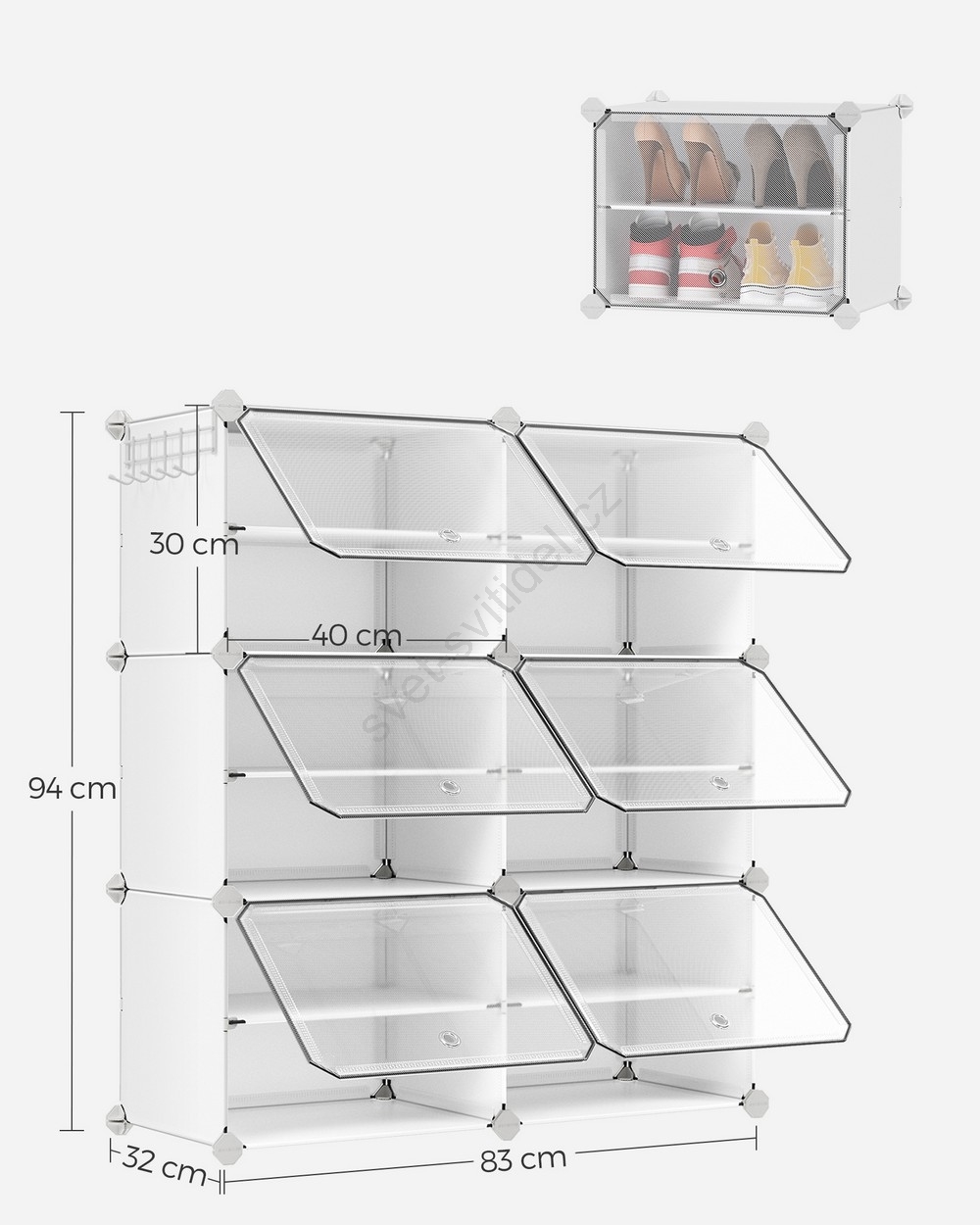 • Organizér pojme až 24 párů bot, lze také použít k uložení tašek a oblečení.
