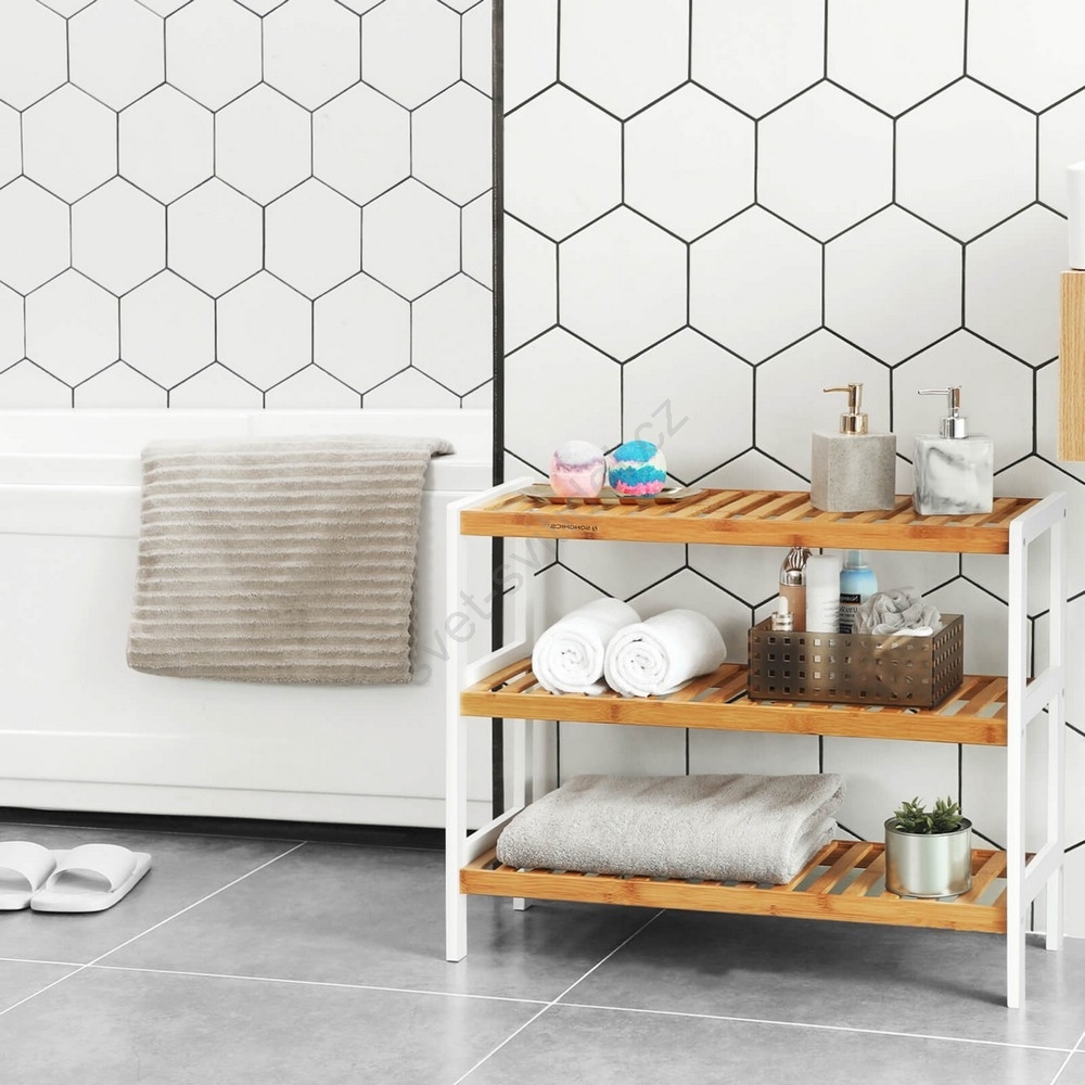 • Jednoduchá montáž - vyrobeno z 2 rámů, 3 polic a 12 šroubů, kompletně sestaveno za několik minut.