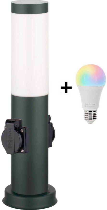 • Brilagi - LED RGBW Stmívatelná vStmívatelná venkovní lampa se 2 zásuvkami 1xE27/15W/230V 2700-6500K IP44 40 cm černá