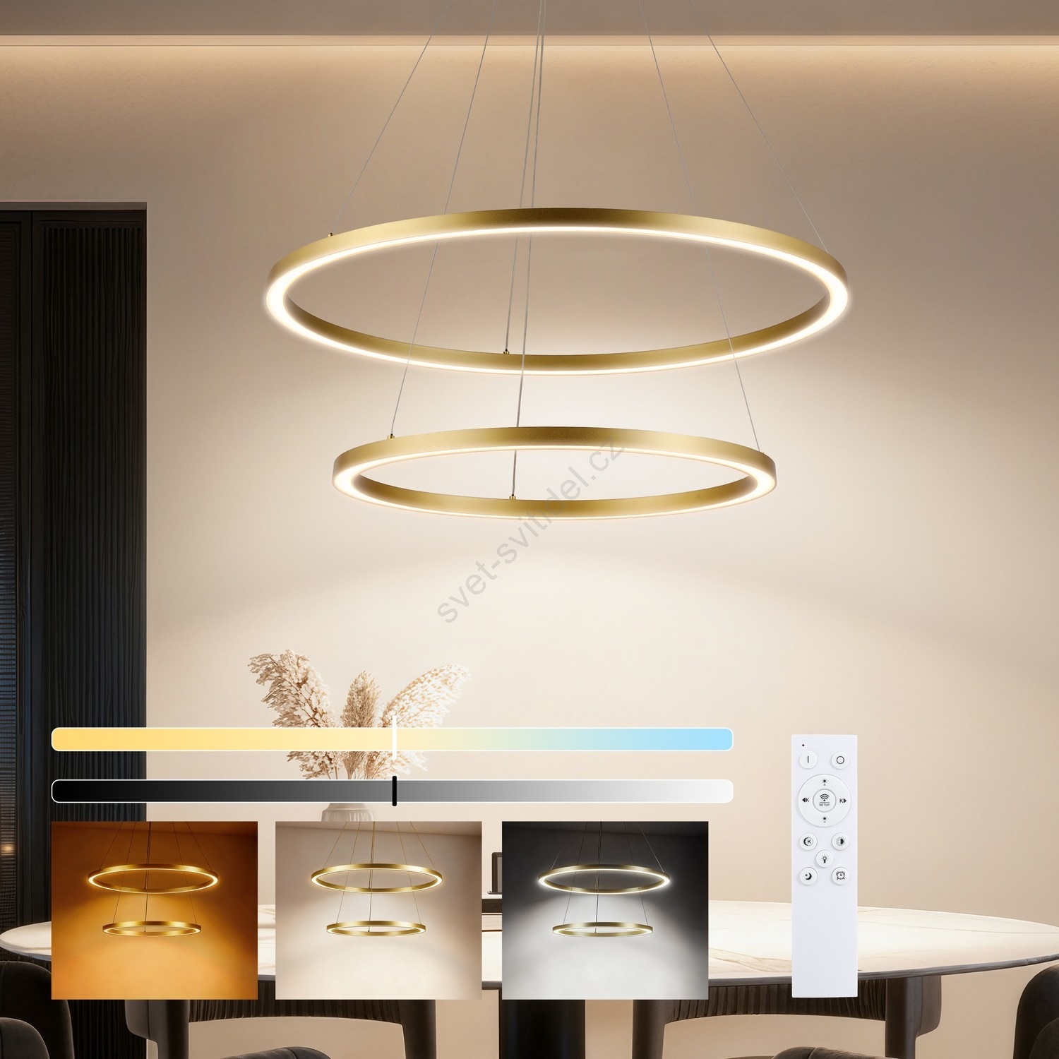 Brilagi - LED Stmívatelný lustr na lanku PORTOFINO LED/98W/230V 3000-6000K pr. 80 cm zlatá + dálkové ovládání