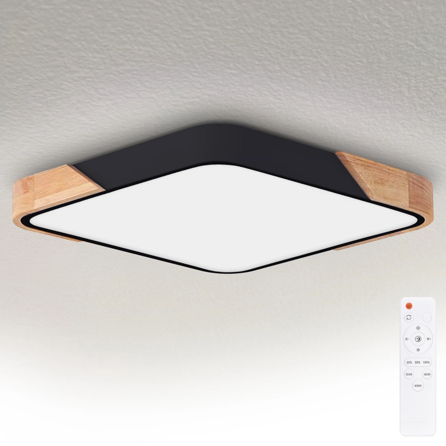 Brilagi - LED Stmívatelné stropní svítidlo PILANA LED/60W/230V 3000-6500K dub/černá 56x56 cm + dálkové ovládání