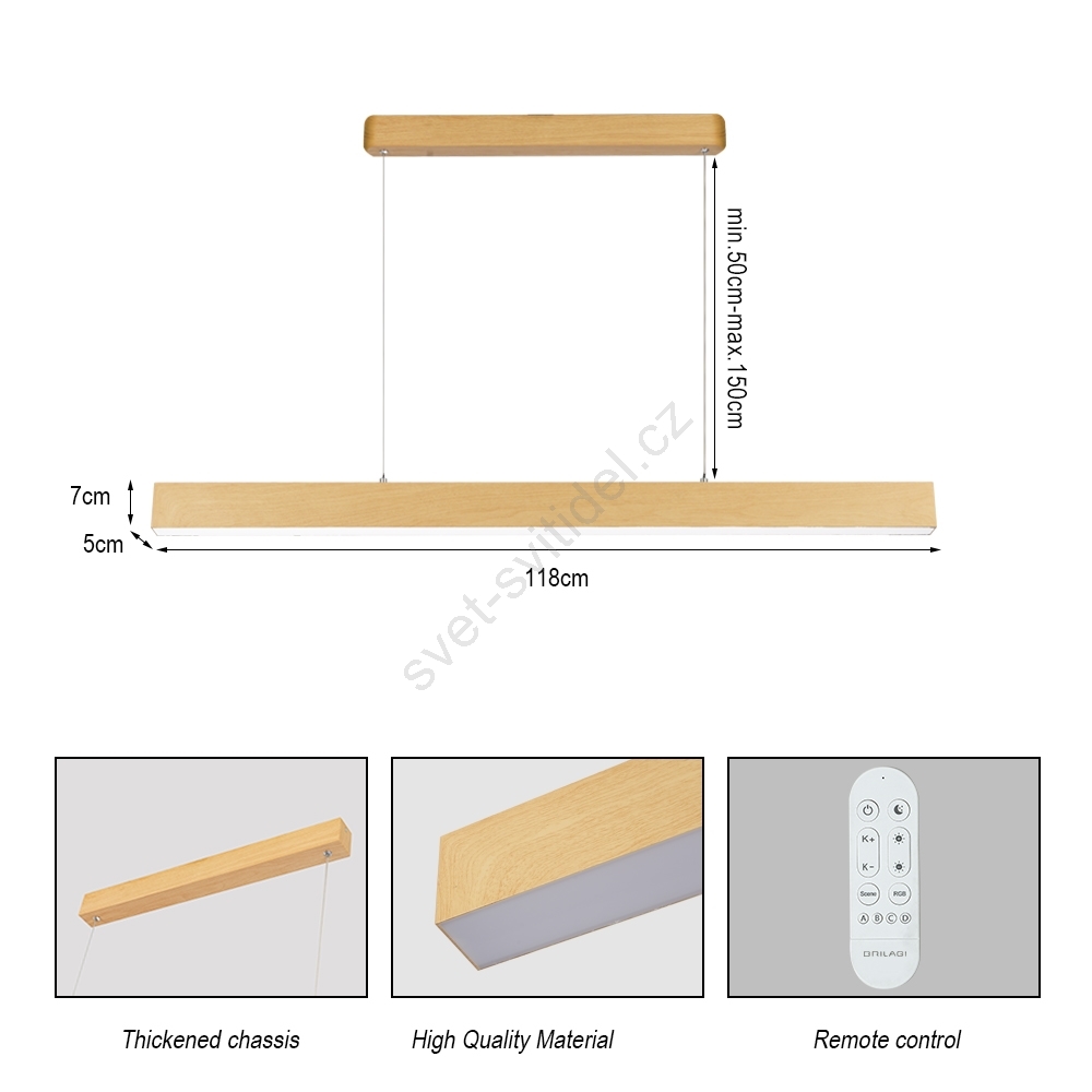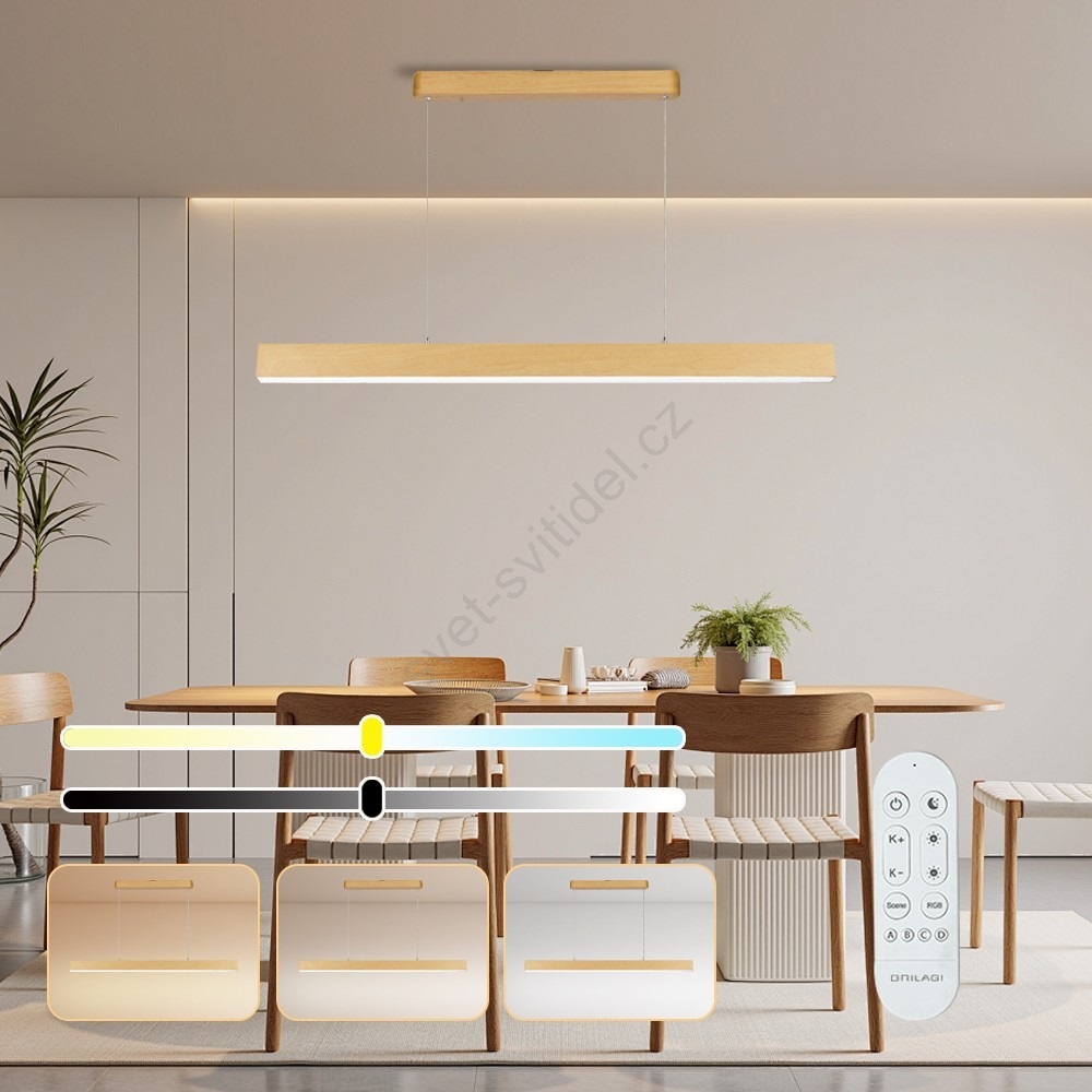 • Brilagi - LED Stmívatelný lustr na lanku SLIMLINE LED/40W/230V 3000-6000K dekor dubu + dálkové ovládání