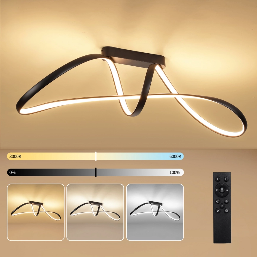 • Brilagi - LED Stmívatelný přisazený lustr TWISTER LED/60W/230V 3000-6000K černá + dálkové ovládání