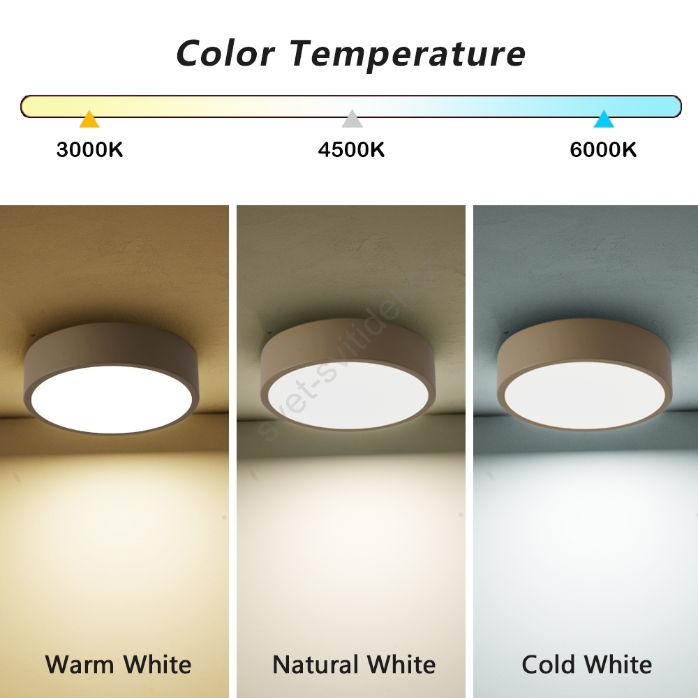 • 6000K – Studené bílé světlo (jasné, energizující světlo, vhodné pro soustředění).