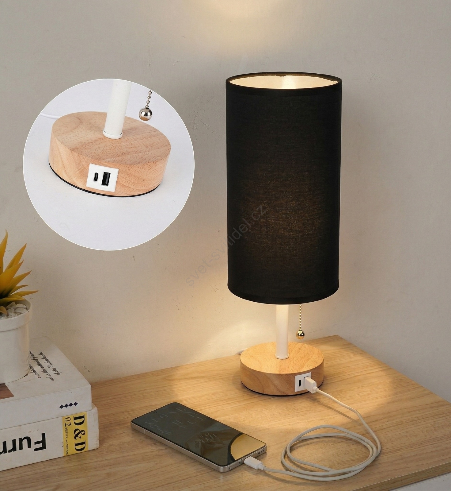 • Brilagi - Stolní lampa s USB portem TABLON 1xE27/25W/230V dub/černá