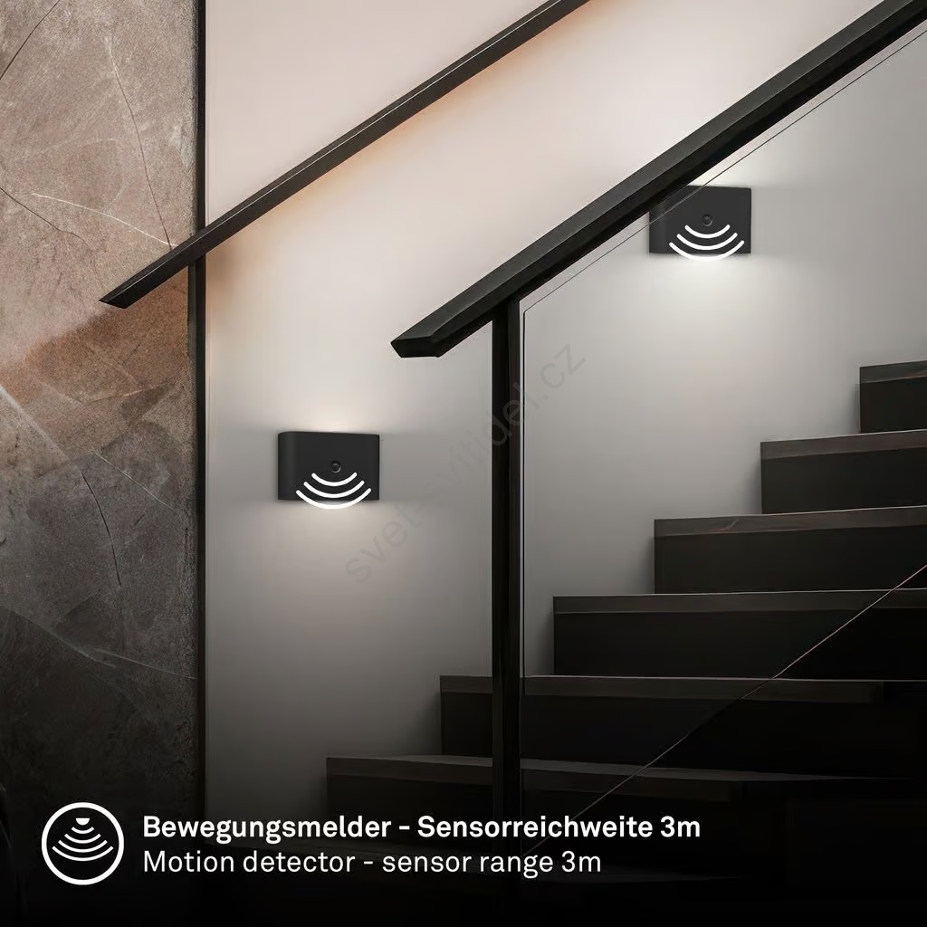• Briloner 3878015 - LED Nabíjecí nástěnné svítidelo se senzorem pohybu a soumraku CHAT LED/3W/5V 2000 mAh černá