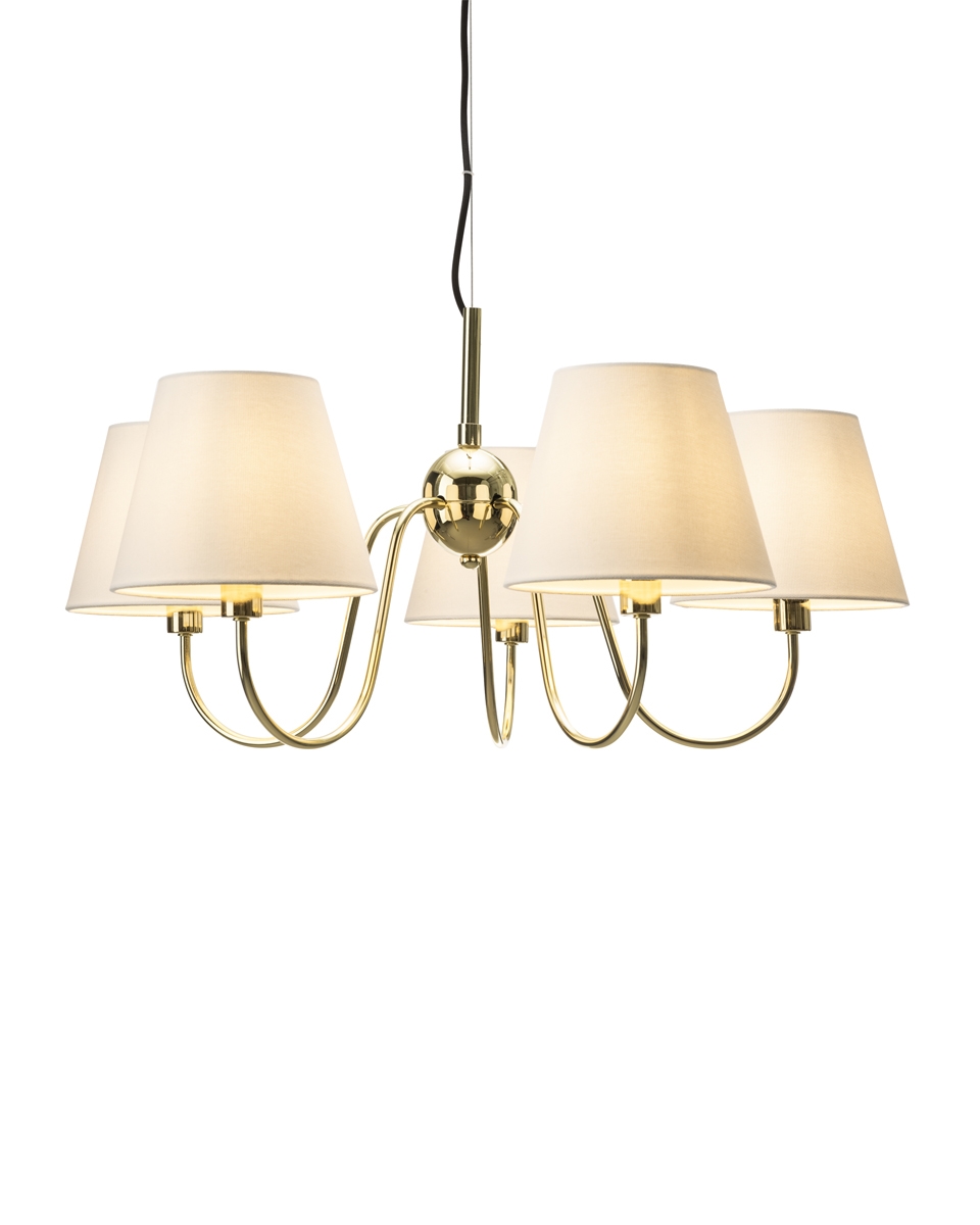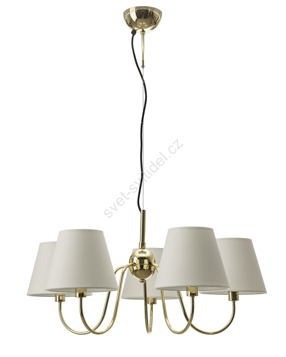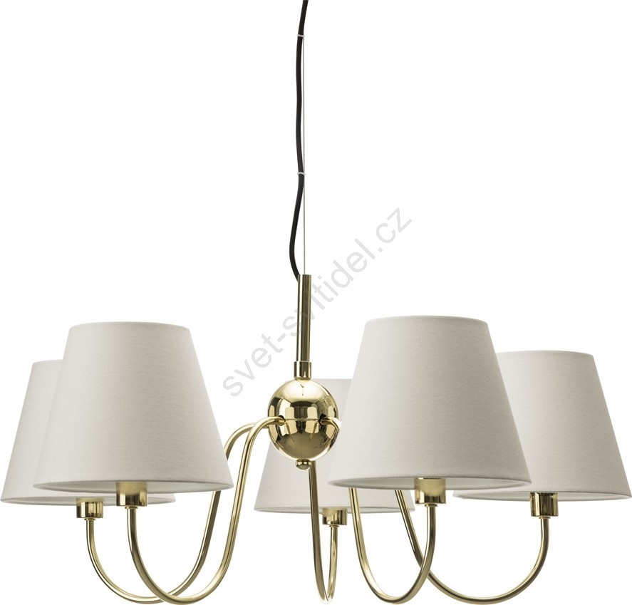 ByRydens - Lustr na lanku LYNF 5xE14/8W/230V mosaz/bílá charakterizuje pěkný design a funkční provedení. Do svítidla je určena žárovka s paticí E14. Zde si můžete koupit další žárovky za výhodnou cenu. Získáte tak zajímavý doplněk do svého domova.