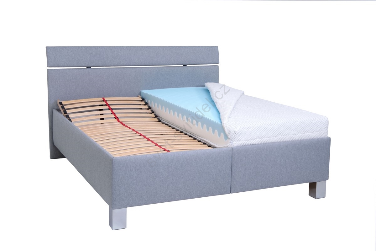 • Komfortní dělené čelo postele - potažené příjemnou látkou s PUR pěnou pro měkkost a pohodlí, ideální například při čtení.