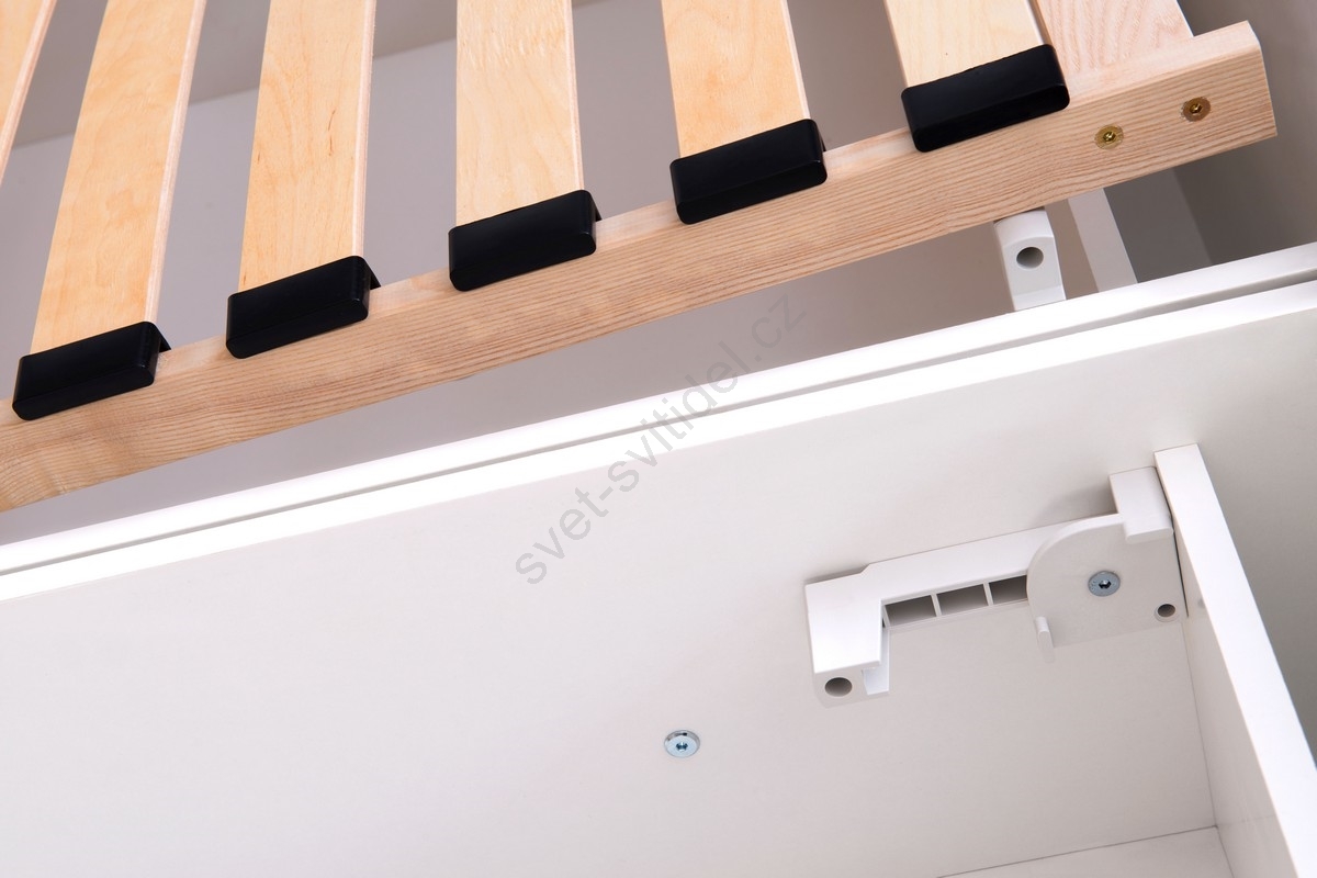 • Postel je vybavena velkým úložným prostorem pro uskladnění lůžkovin a dalších předmětů.