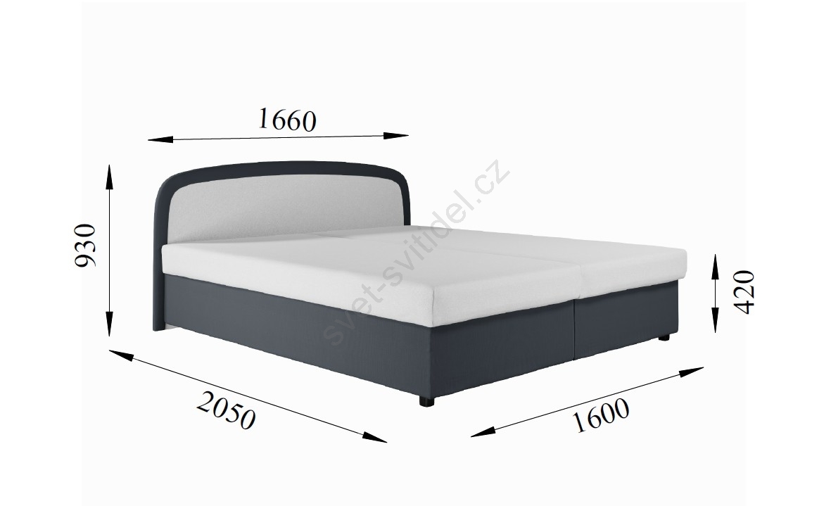 • Rozměr ložné plochy: 160 x 200 cm.