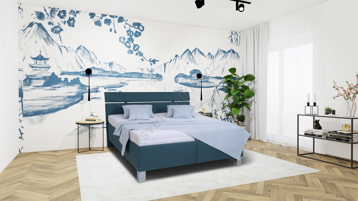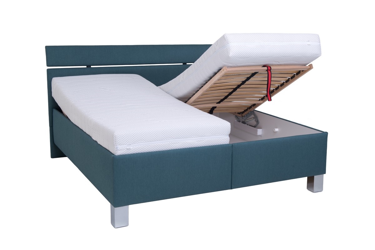 • Čalouněná postel s matrací a úložným prostorem ALIS 160x200 cm petrolejová