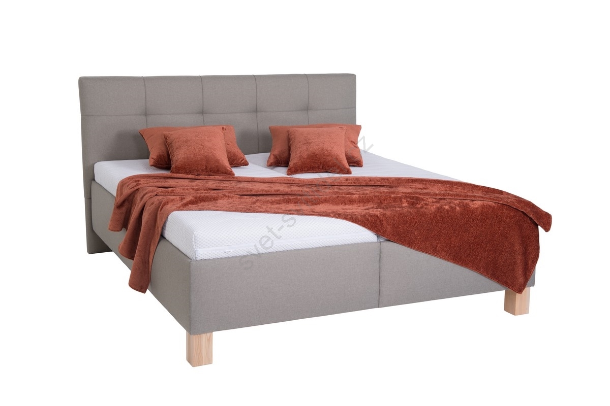 • Čalouněná dvoulůžková postel s volně loženými matracemi se pyšní detailně propracovaným, elegantně prošitým čelem.