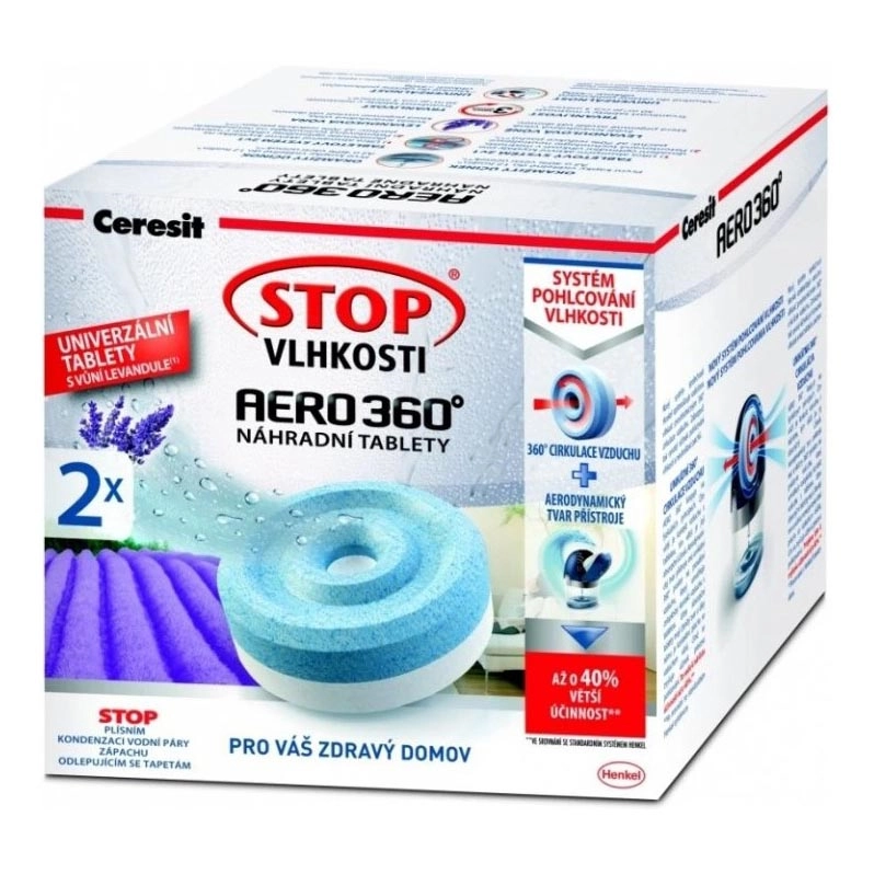 Ceresit - Tablety pro odvlhčovač 2v1 AERO 360° 2x 450 g levandulová zahrada