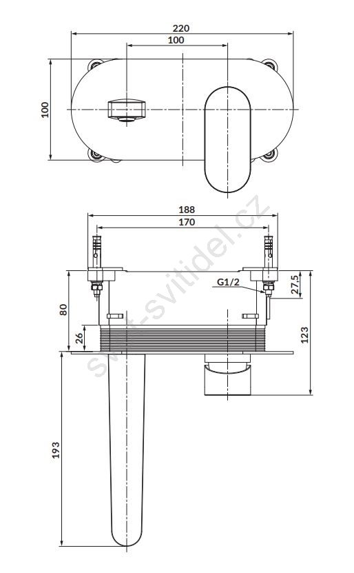 • Jednopáková vanová baterie pro podomítkovou instalaci.