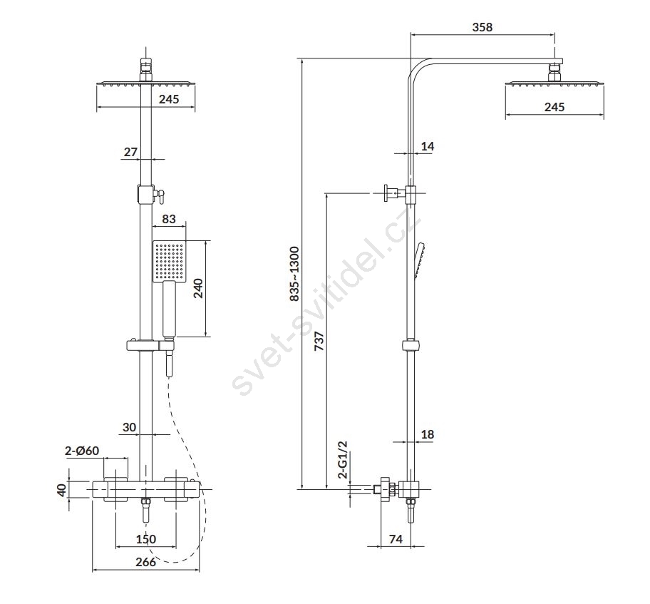 • Sada obsahuje 150 cm dlouhou sprchovou hadici.