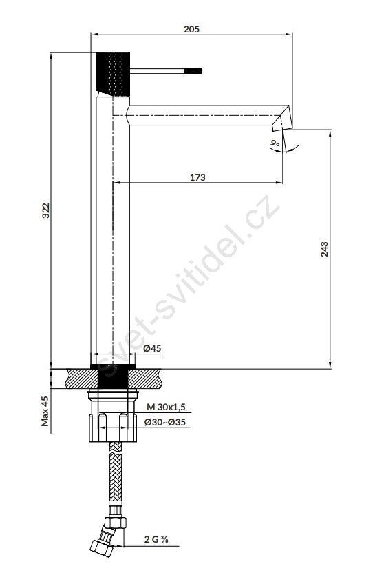 • Ovládací prvek: keramická kartuše 25 mm.