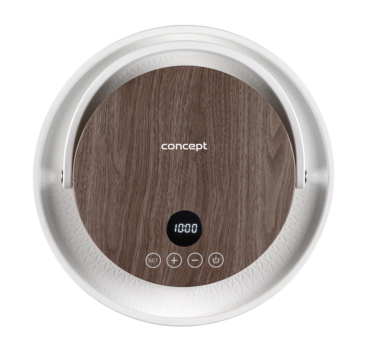• Víko s dřevěným designem a praktickým držadlem.