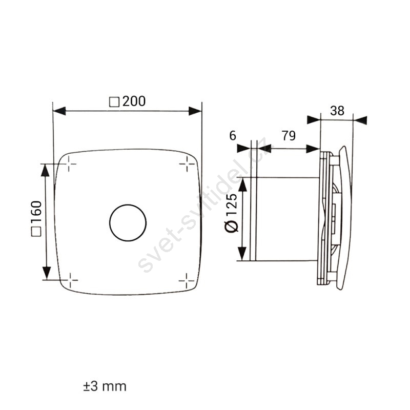 • Ventilátor je kompatibilní s potrubím o pr. 125 mm.