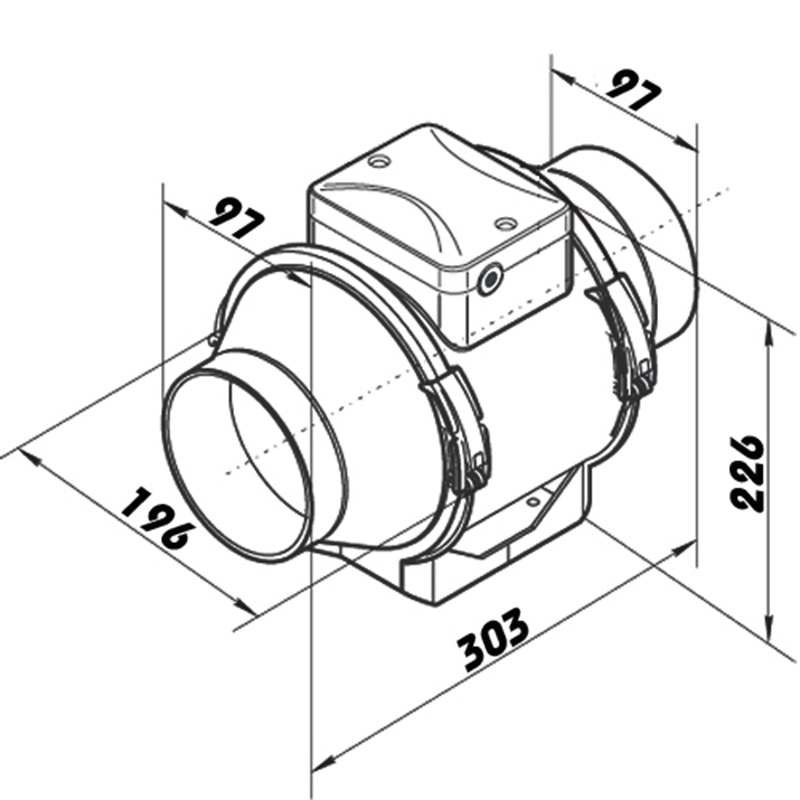 • Díky své konstrukci je ideální pro odvádění vzduchu potrubím, jehož délka je maximálně 10 metrů.