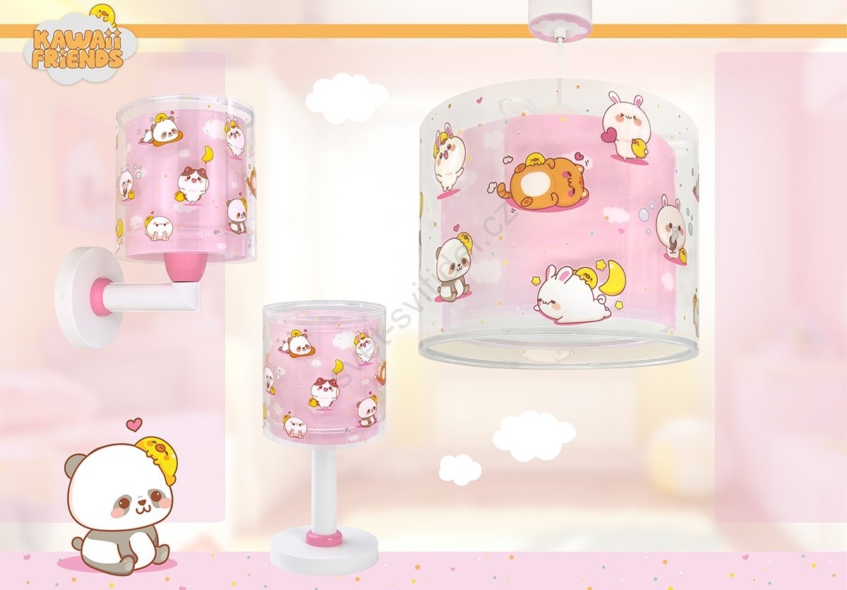 Dalber 41762S - Dětský lustr KAWAII FRIENDS 1xE27/15W/230V růžová