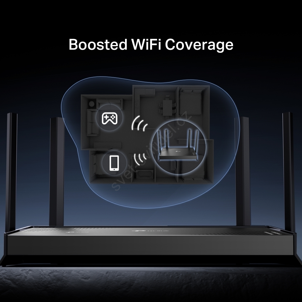 • Maximální pokrytí - 4× externí antény spolu s technologií Beamforming poskytují větší kapacitu, silnější a spolehlivější připojení a méně rušení.