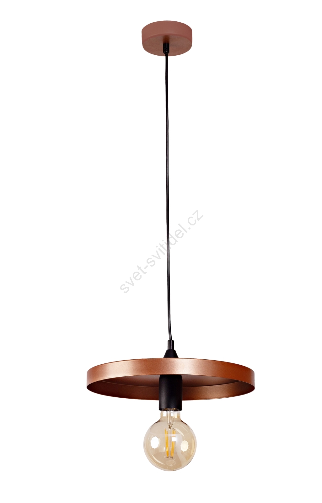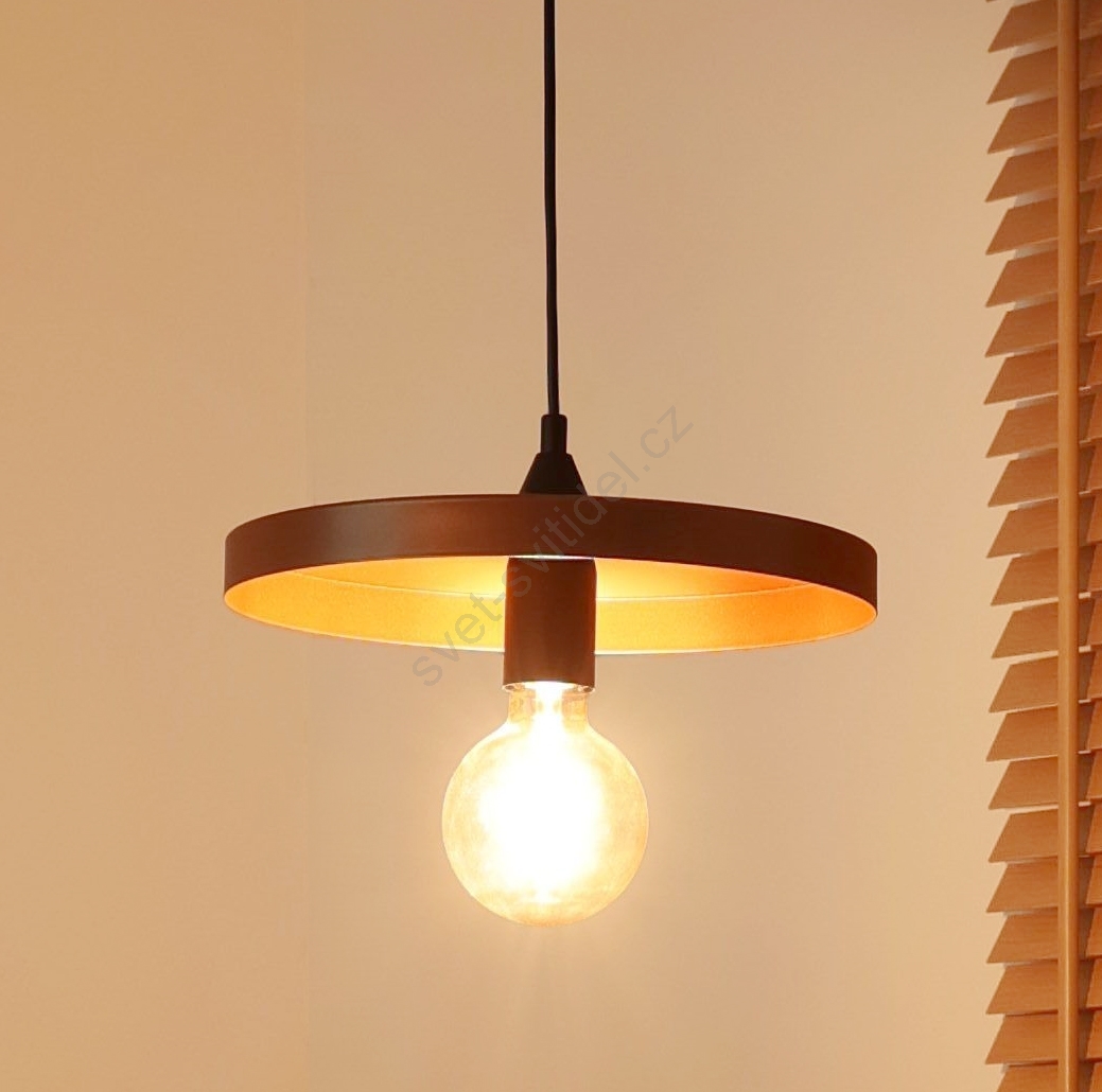Duolla - Lustr na lanku IRONLINE 1xE27/15W/230V pr. 30 cm měděná/černá charakterizuje pěkný design a funkční provedení. Do svítidla je určena žárovka s paticí E27. Zde si můžete koupit další žárovky za výhodnou cenu. Získáte tak zajímavý doplněk do svého domova.