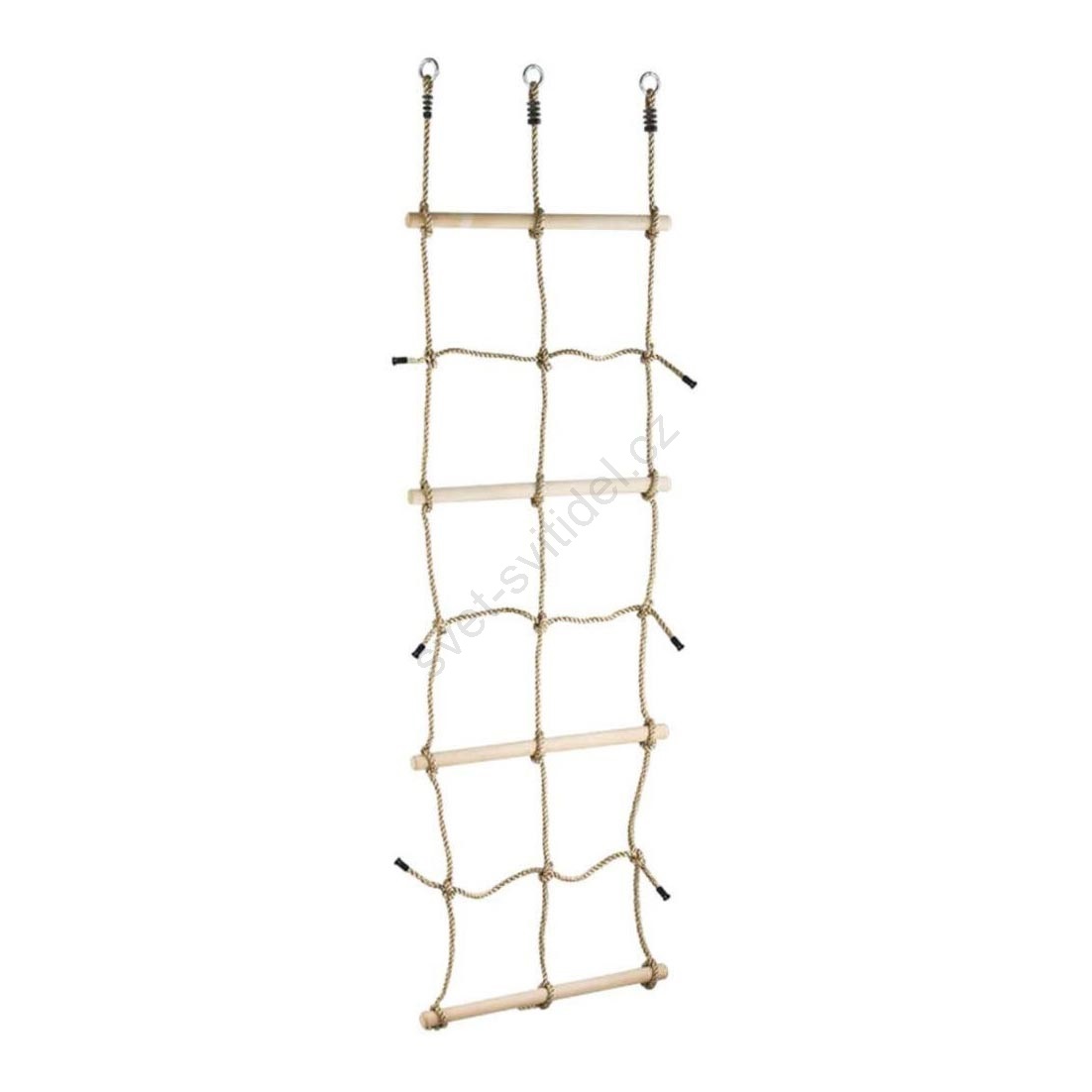• Šplhací síť s dřevěnými příčkami s 3 závěsnými kroužky.