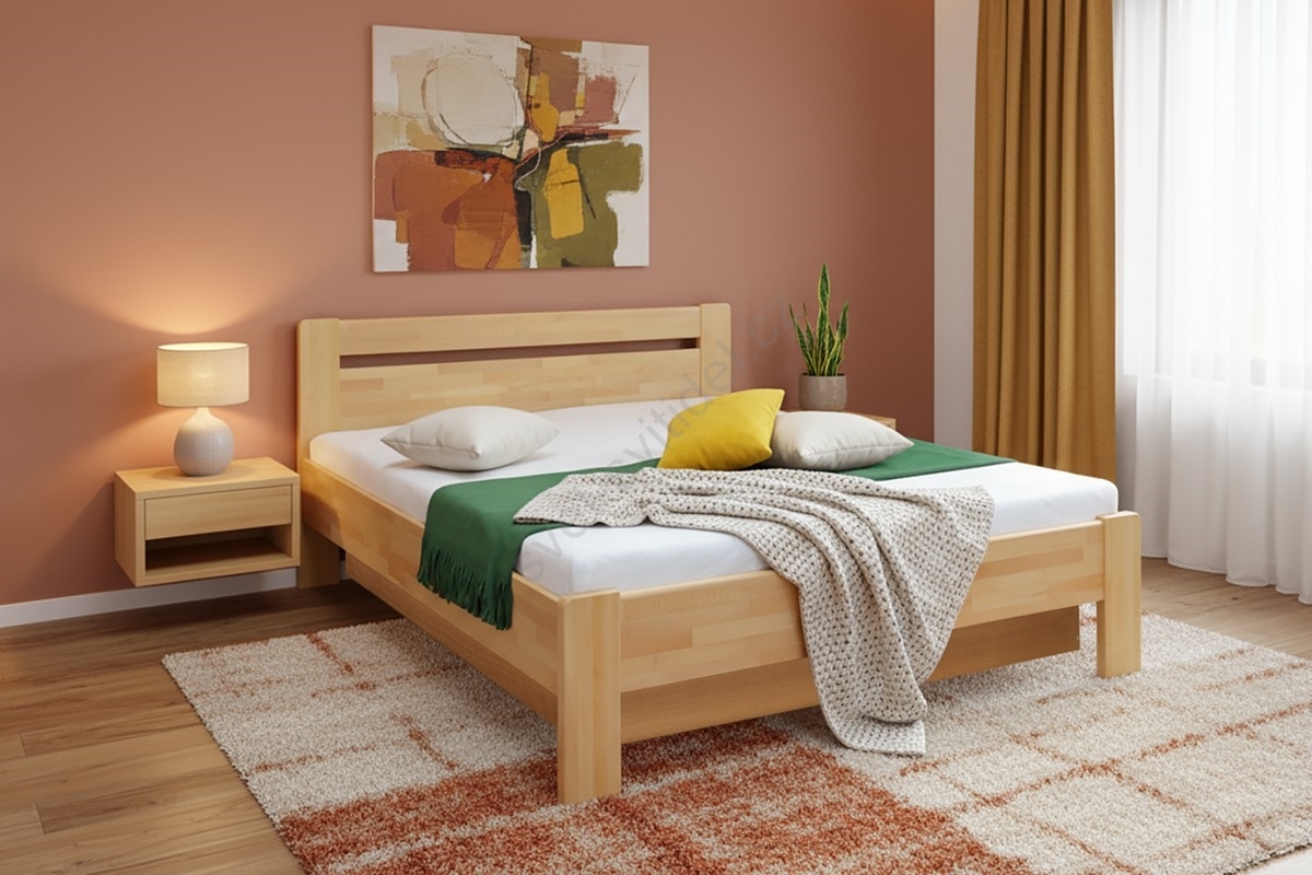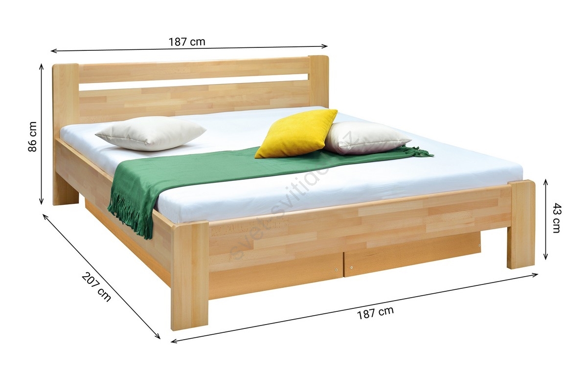 Dvoulůžková postel s roštem a úložným prostorem z masivu AMARA 180x200 cm buk