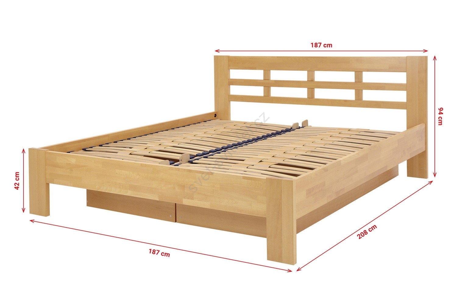 • Dvoulůžková postel z masivu s úložným prostorem ANGELA 180x200 cm buk