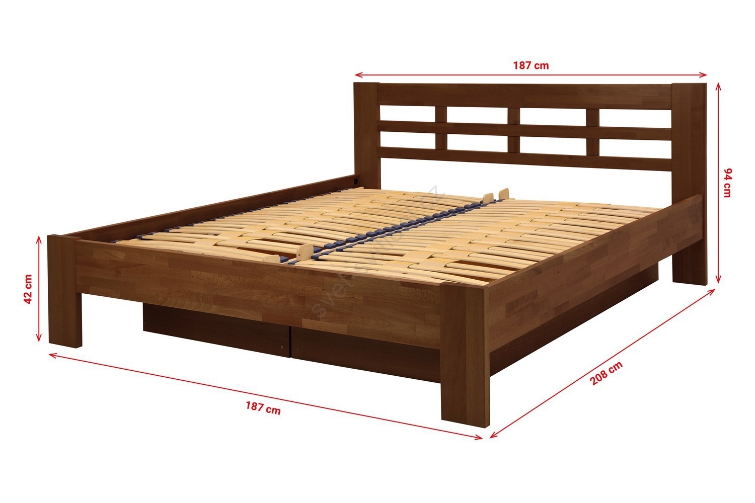 • Dvoulůžková postel z masivu s úložným prostorem ANGELA 180x200 cm ořech