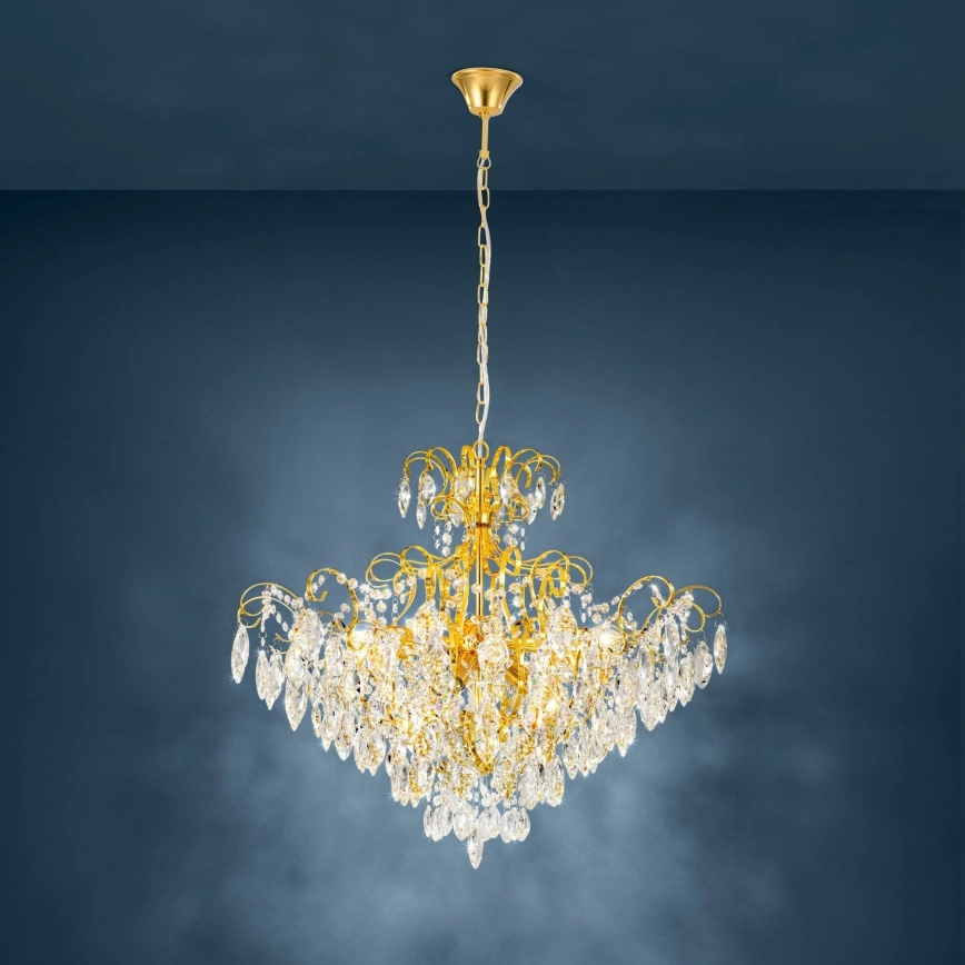 Eglo - Lustr na řetězu 9xE14/25W/230V zlatá charakterizuje pěkný design a funkční provedení. Do svítidla je určena žárovka s paticí E14. Zde si můžete koupit další žárovky za výhodnou cenu. Získáte tak zajímavý doplněk do svého domova.