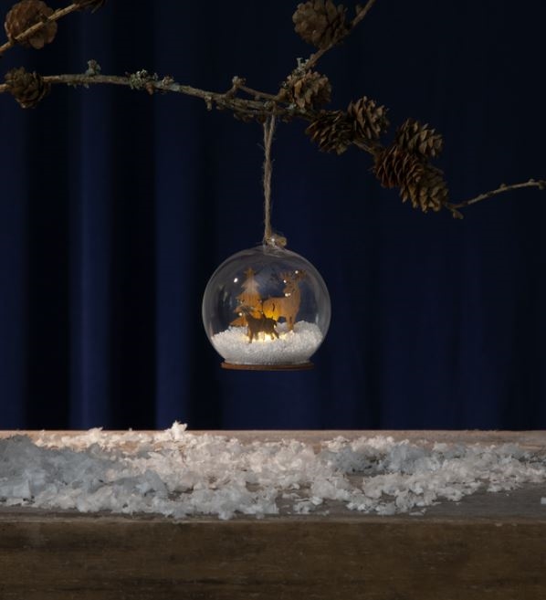 • LED vánoční dekorace ve tvaru sněhové koule.